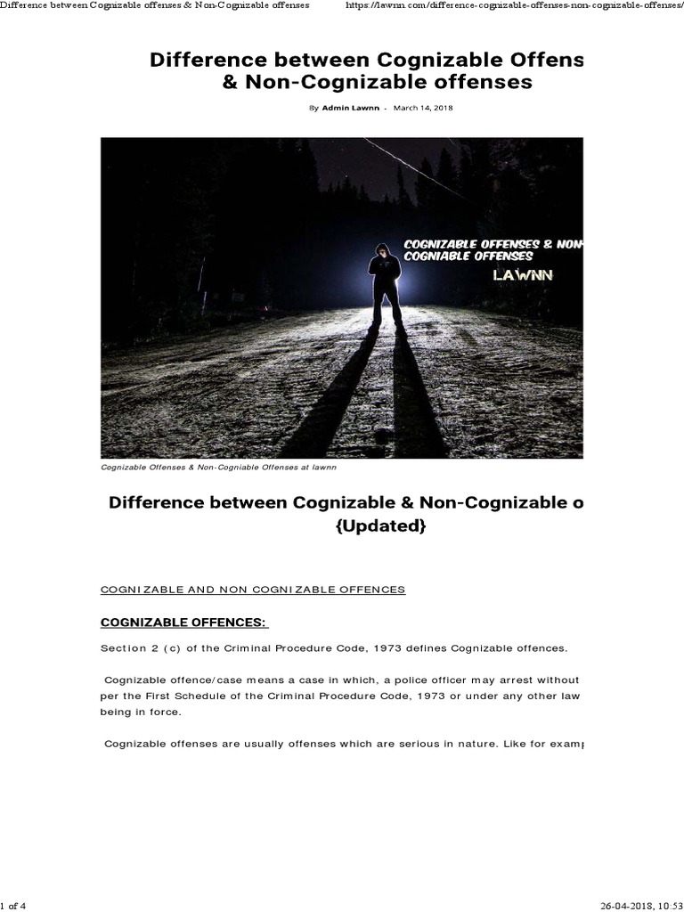 Distinction Between Cognizable Offence And Non Cognizable Offence - Capable of being known, also liable to be tried in a given court or jurisdiction, from stem of… related: